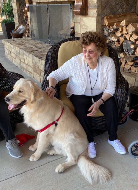 For this visit, Floyd approached Charlie in a motorized wheel chair. Since Charlie had been exposed to those before as a puppy, he was not surprised at all. He approached Floyd as Floyd was driving up to him; Charlie simply backed up until Floyd stopped. Floyd was wearing a mask, but was calling out to Charlie as he approached. Charlie’s tail wagging all the while. He knew his friend, no matter where he was. It was such a heart warming experience to see them reconnect. Floyd shared some treats with Charlie, and we brought some Vanilla Wafers, which Charlie only has when he would visit Floyd. Floyd actually introduced Charlie to this treat, and Charlie slobbers and drools with delight each time he gets one. Since we had been working on new tricks, Charlie also showed Floyd, and avid animal lover himself, his new tricks, and ended their time together by waving Bye, Bye. Needless to say, it was an Awesome visit for Charlie and Floyd, different, but Charlie nor Floyd seemed to care.