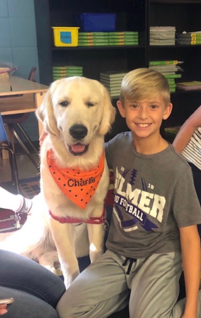 The after school visits with the teachers’ children went exceptionally well! My dream to have a Reading Dog was coming to fruition. Charlie began to visit the school every Tuesday and Thursday, and occasional Fridays. He visited every classroom from Pre-K through 5 and Special Education at least one time, and several classes received a second visit. The Children ALL loved Charlie. They would see him in the hallway and get excited, and Charlie would get excited too. One time as we were leaving and had to pass near the lunchroom, and the line of children, they started cheering and chanting his name. The teachers and staff love him, and seemed to really look forward to his visits. When Charlie would come into a class, depending on the age of the children, they would read to him, or tell him about the book which they were reading, or the story that had been read to them. It was very real to the children, they even showed him pictures from their books. “Look Charlie, see the snowman?” The older children would read their chapter books, and pet him while reading. He usually spent 45 minutes to an hour in a class, and most days he would visit two or three classes, with a potty break in between. March 12, 2020 was the last class visit Charlie made, before the Corona Virus closed down the schools for the rest of the 2019-2020 school year.