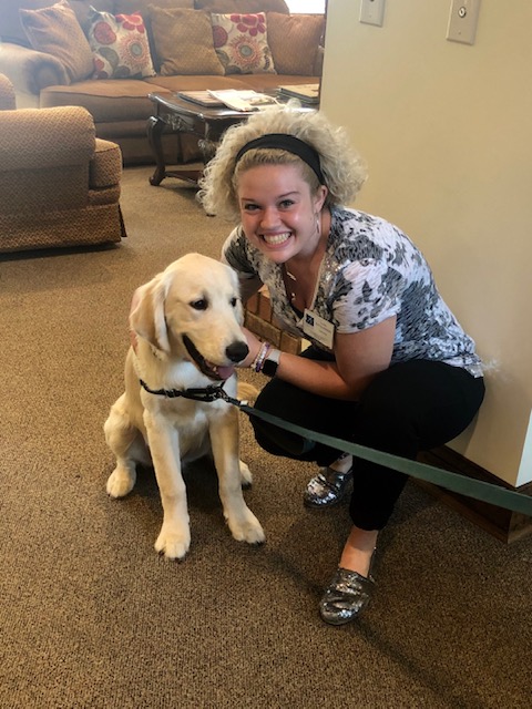 As one who enjoys social media, of course I posted what my “Puppy with a Purpose” was doing. This lead to another invite to an assisted living center in Ellijay. This facility was a little different from the one in Jasper. It had an elevator, which Charlie had to learn to ride, while practicing his manners when others where riding with us. At this facility, there were no large group areas. We pretty much only made room visits to residents who loved animals, and missed the ones they had left behind.