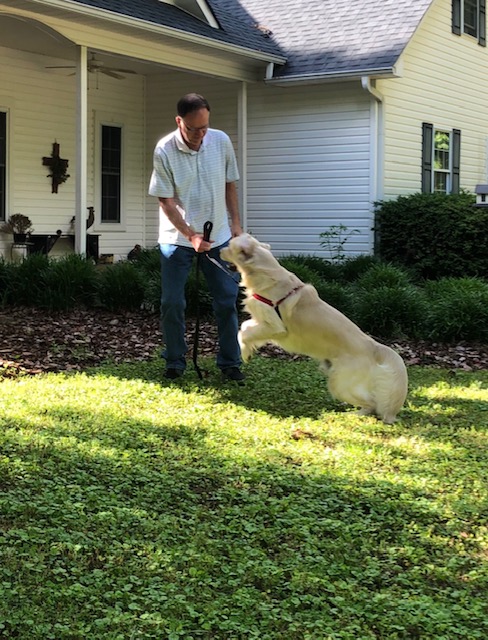 Thank goodness for our neighbor, Pastor Asa. Ask would let Charlie come over to his house, and he would love and pet on him, and take him for walks. They would jump around and play together. This helped to replace some of what Charlie was missing. Asa and his wife, Debbie were Charlie’s first friends. Charlie bonded with them when he first came home. In November of 2019, Debbie passed away suddenly. We all were in shock. With his almost daily visits to Asa’s house during the lockdown, Asa said, “Charlie is now providing some needed therapy for me.” Asa was therapy for Charlie, and Charlie for Asa. To this day, they have a very unique and special bond, a love that I think only the two of them and God really understand.